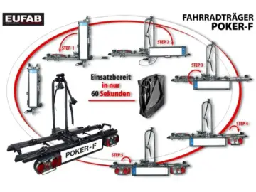 Der EUFAB Poker-F ist ein hochwertiges Qualitätsprodukt, das wohl durchdacht ist und sich durch seine Bedienungsfreundlichkeit auszeichnet. Dazu gehört beispielsweise der praktische Abklappmechanismus, der Sie jederzeit mühelos an den Kofferraum gelangen lässt.